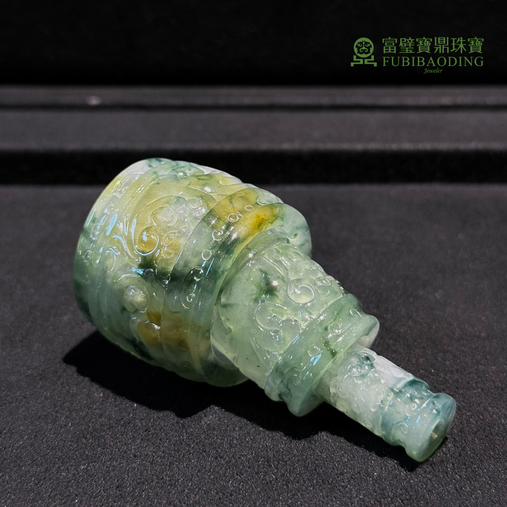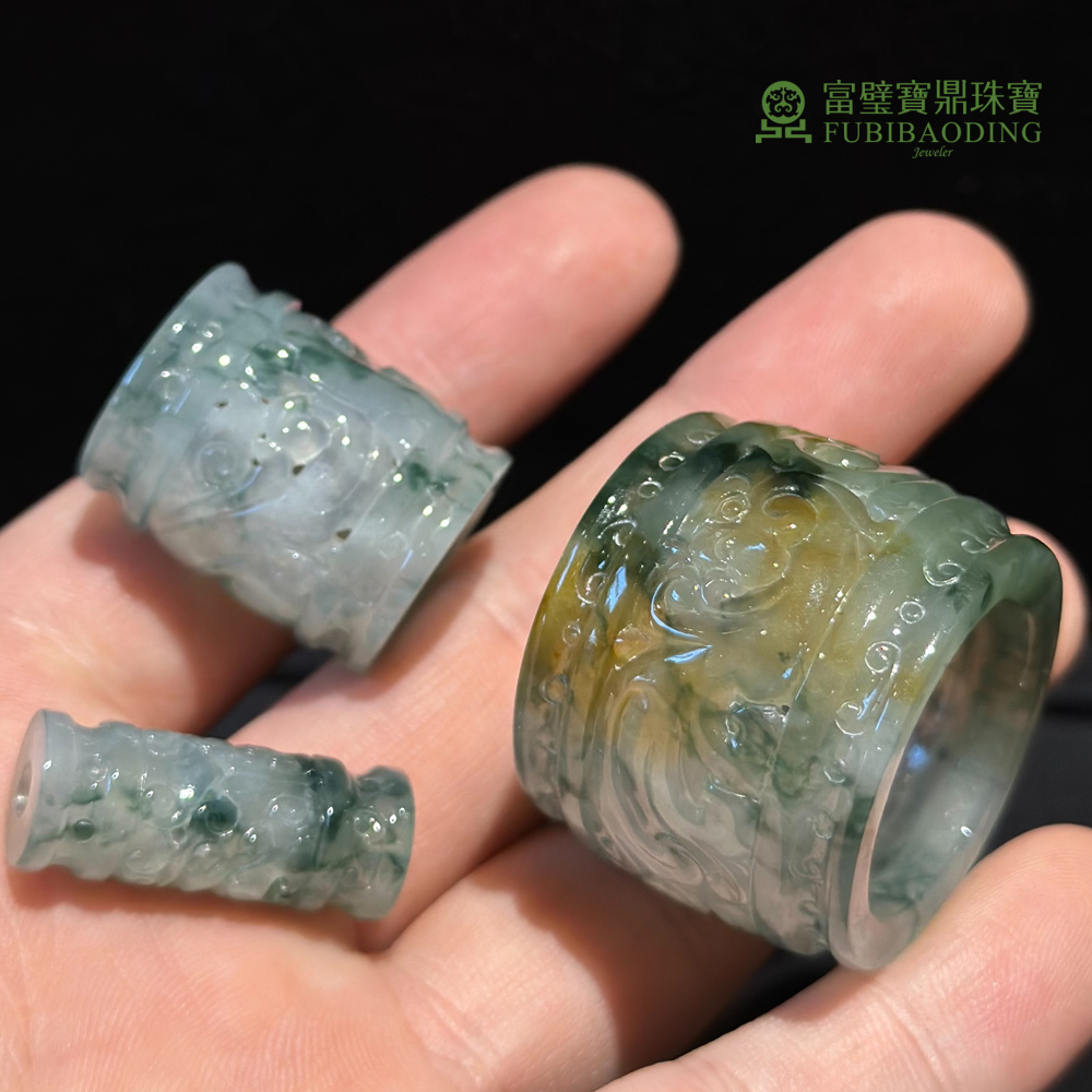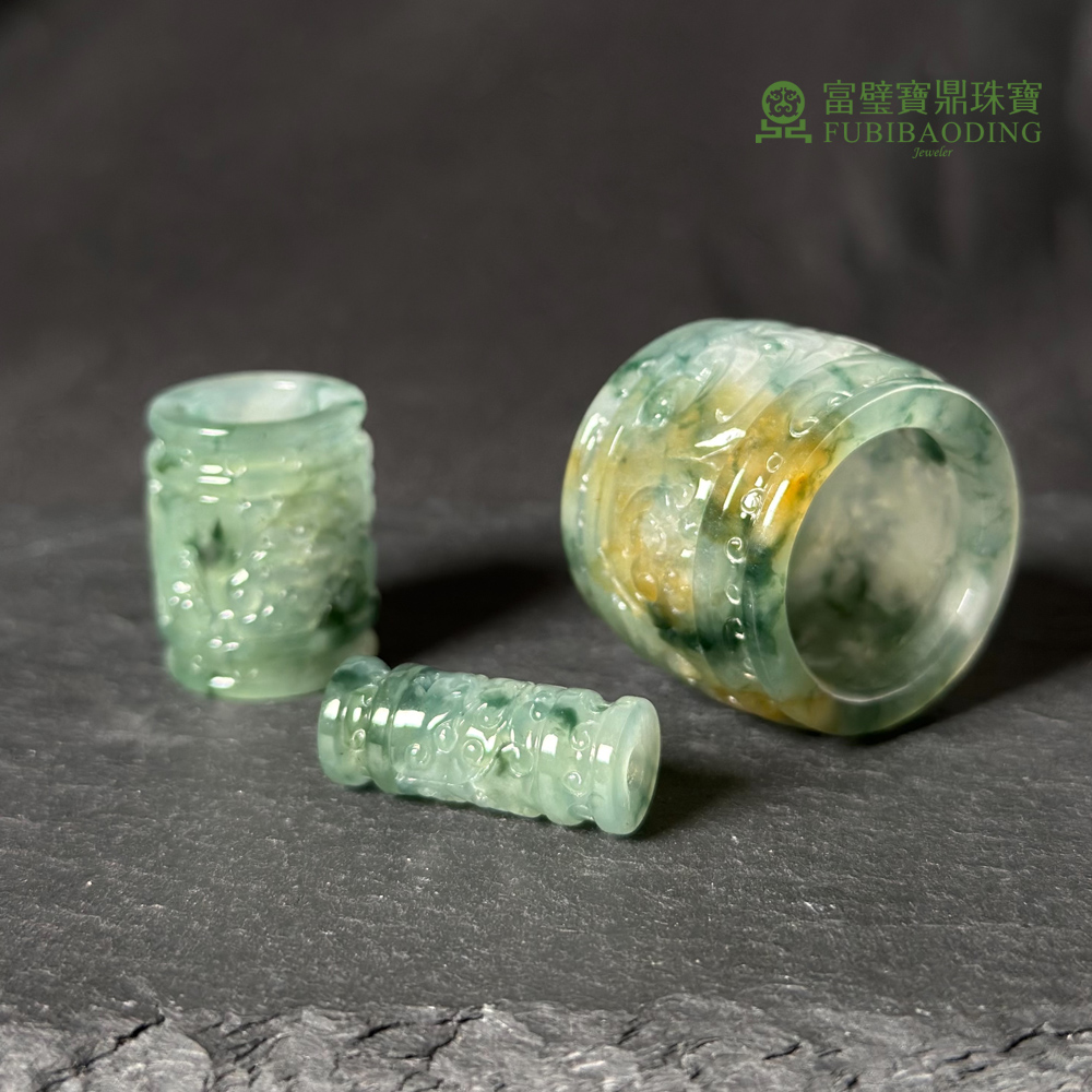 冰種三彩飄藍花扳指三件套