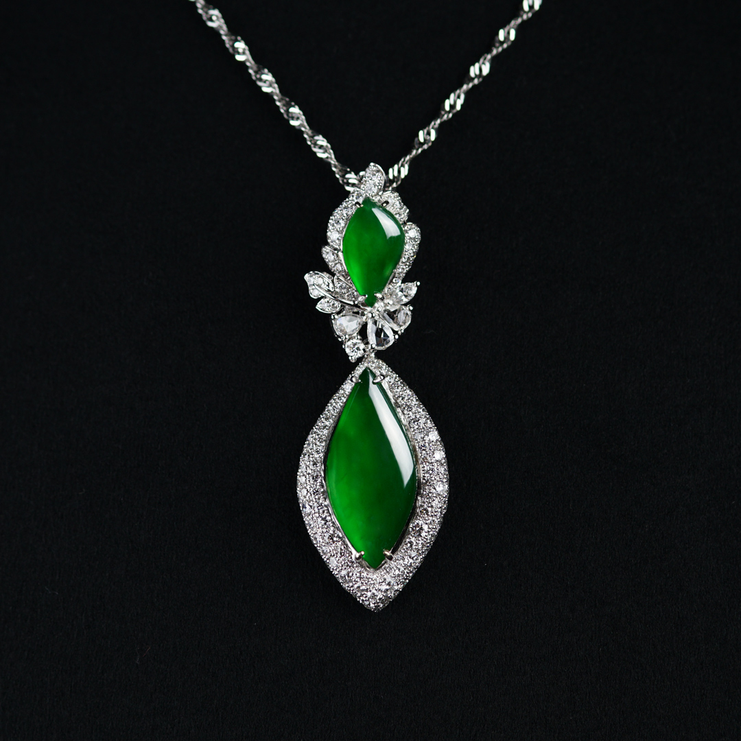 高冰種陽綠放光馬鞍香水瓶墜