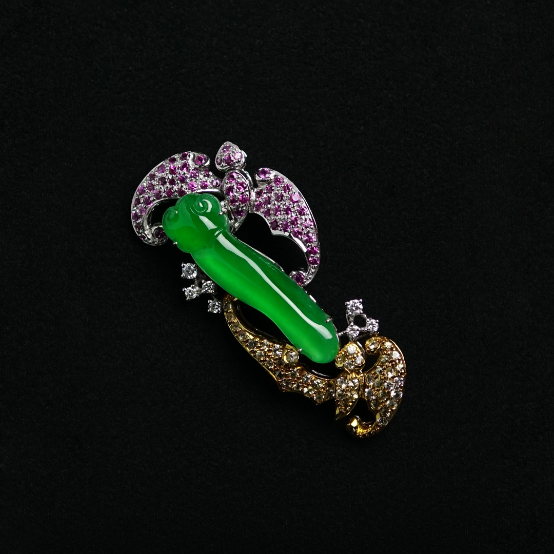 陽綠雙福胸針