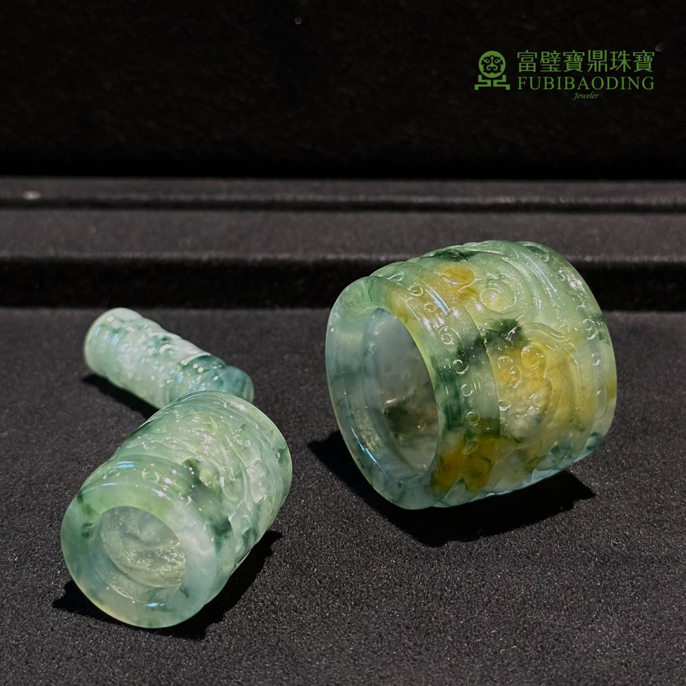 冰種三彩飄藍花扳指三件套