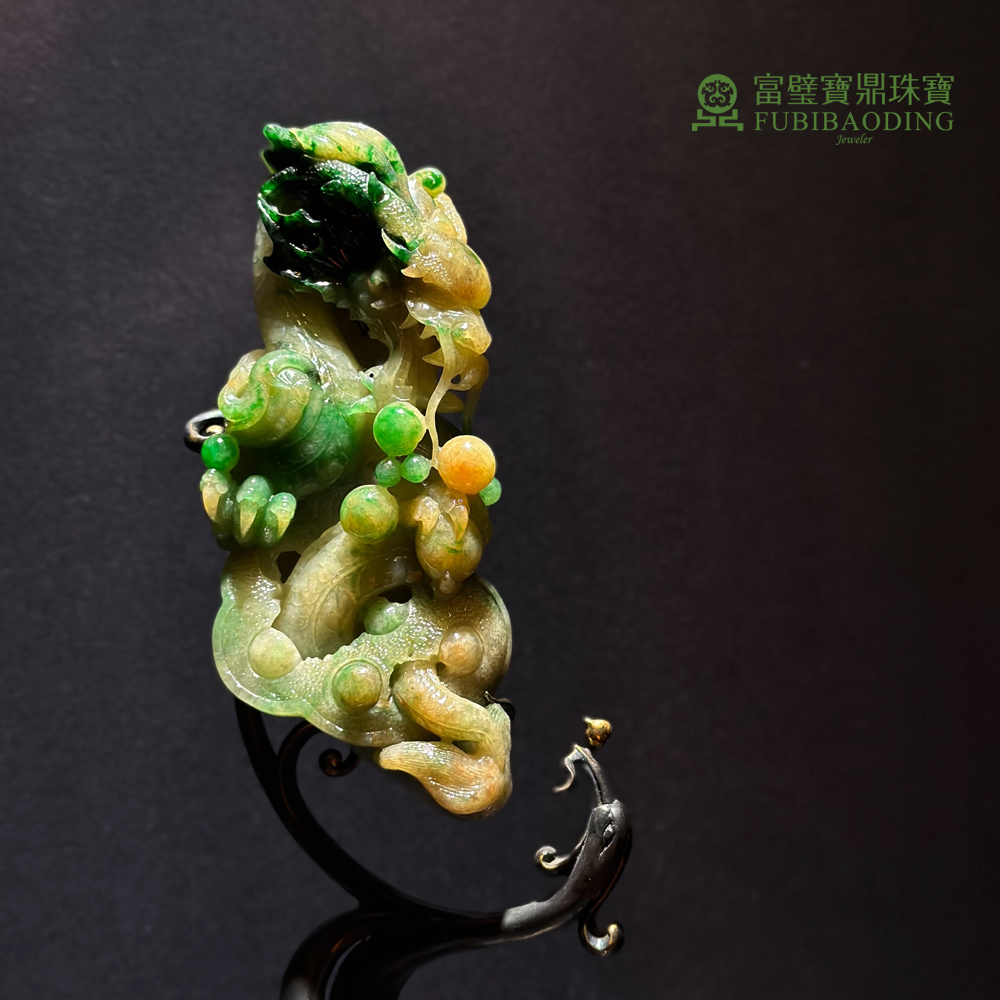 老三彩翡翠飛龍在天擺件