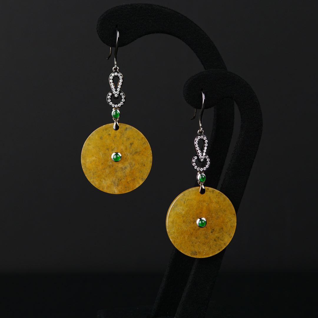 黃翡圓牌耳環